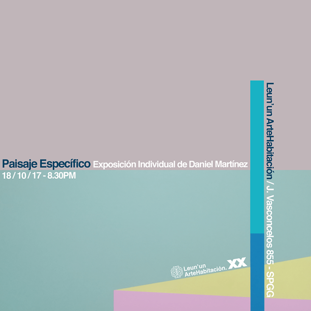 En el año 2017, Luis Puente, director del espacio independiente de arte Leun’un ArteHabitación, me invitó a curar una exposición de Daniel Martínez a presentarse en dicho espacio; la intitulé «Paisaje Específico». Cabe señalar que el trabajo de Martínez lo conocía desde que se encontraba recién emigrado a Monterrey, cuando me buscó personalmente para mostrarme su portafolio; es por ello que atestiguo su transición del figurativismo a la abstracción geométrica, sin perder el narrativismo que lo ha caracterizado desde sus tempranas obras artísticas.