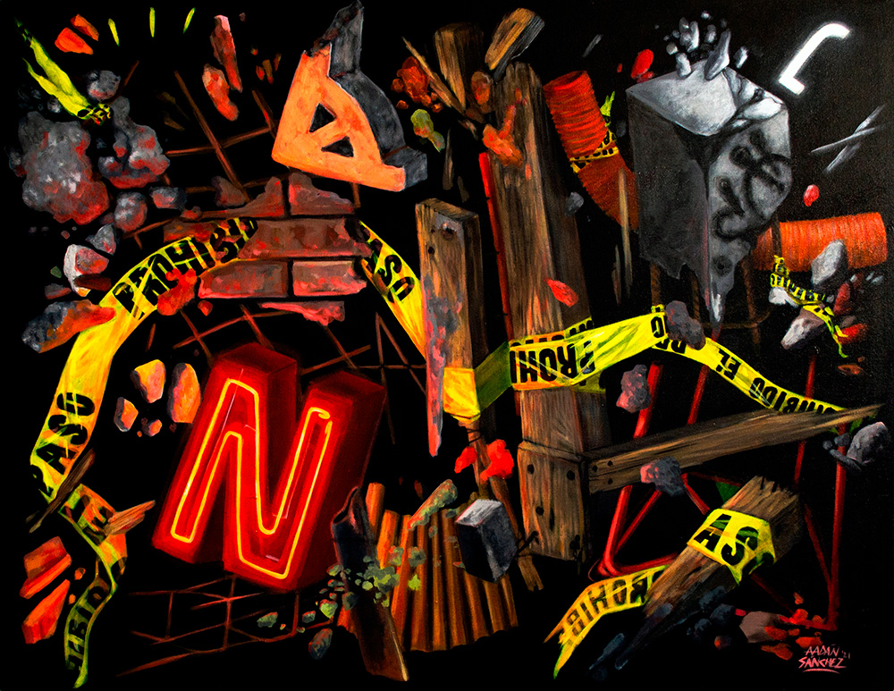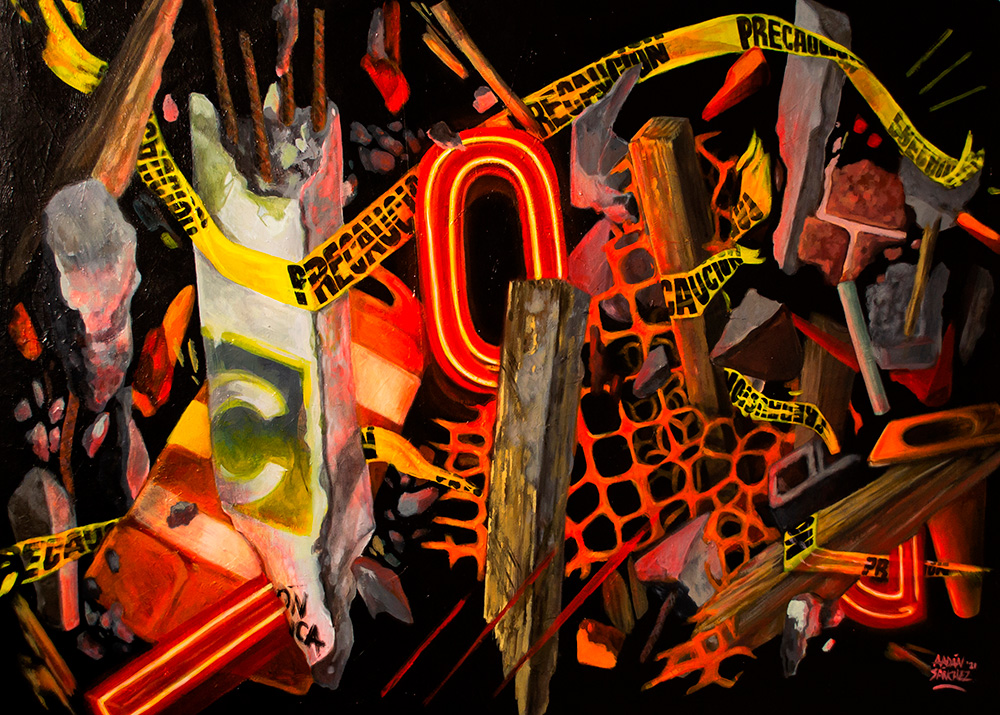 Texto curatorial para la exposición «Re-Construcción. Ecos de la Ciudad», del artista Adán Sánchez, que se presentó en el mes de julio de 2021, en el espacio independiente de arte Yo Studio, en Monterrey, México.