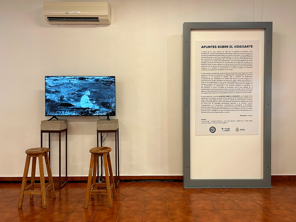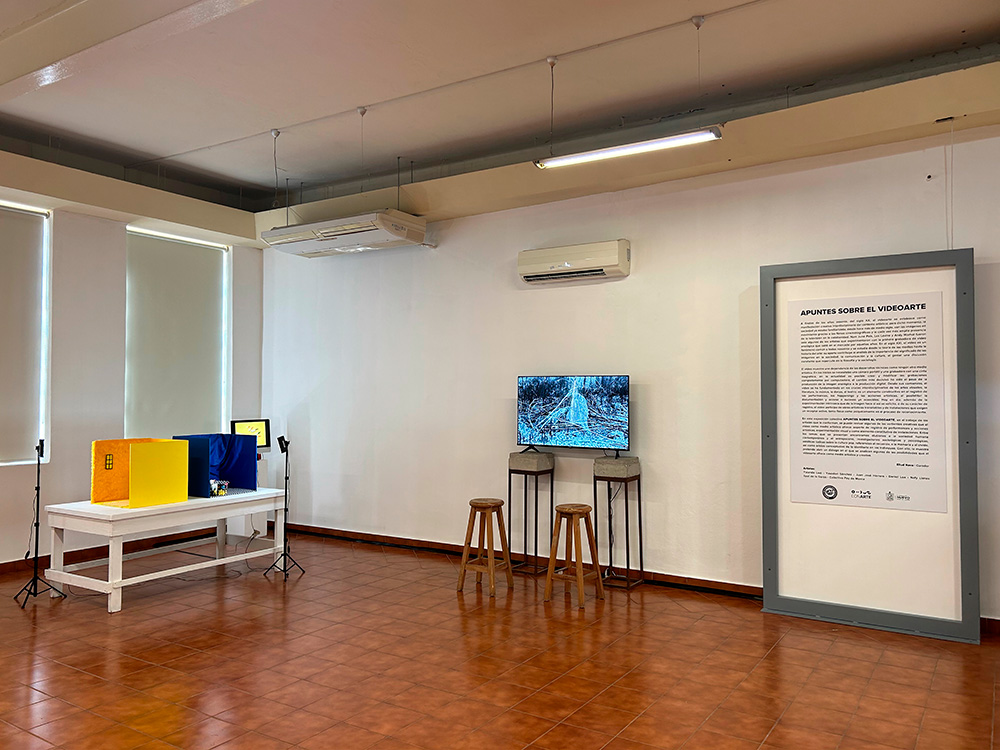 En esta exposición colectiva APUNTES SOBRE EL VIDEOARTE, en el trabajo de los artistas que la conforman, se puede revisar algunas de las vertientes creativas que el video como medio artístico ofrece: soporte de registro de performances y acciones artísticas, experimentación visual y como elemento constitutivo de instalaciones. Entre los temas que se presentan encontramos alusiones a la sociedad humana contemporánea y el antropoceno, investigaciones sociológicas y psicológicas, estéticas lúdicas sobre la cultura pop, referencias al recuerdo, a la memoria y al olvido, así como aristas conceptuales de lo identitario en los individuos. Con ello, la muestra pretende abrir un diálogo en el que se analicen algunas de las posibilidades que el videoarte ofrece como medio artístico y creativo.