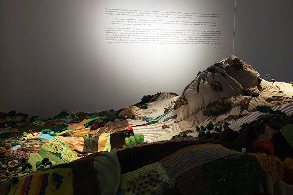 En el proyecto “El campo mi manto”, una instalación textil colaborativa realizada principalmente con materiales reciclados y que ha viajado por diversos países sensibilizando a infantes, adolescentes, jóvenes y adultos acerca de la importancia de reconciliarnos con la naturaleza, sin exigirle vorazmente los frutos de la siembra o el mantenimiento sobreexplotado de animales y plantas para la alimentación humana, podemos observar esta impronta de detenernos un momento, en el vertiginoso vaivén del mundo contemporáneo y reflexionar si acaso el camino del hiperconsumo es el más adecuado en esta vida actual, o es necesario aprender de nuevo “el lenguaje de la responsabilidad” ante nosotros mismos y por ende, ante el otro.