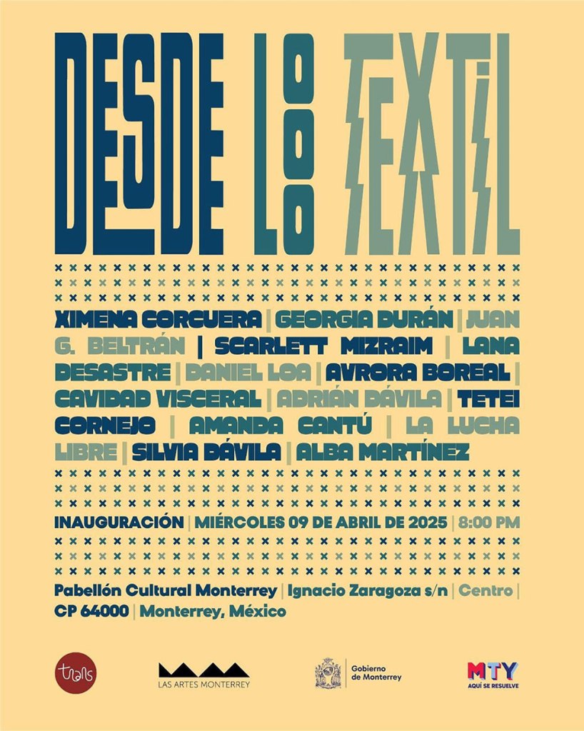 Texto curatorial para la exposición colectiva «Desde lo Textil», que se presentó en el Pabellón Cultural Monterrey. Del 9 de abril al 25 de mayo de 2025. Monterrey, Nuevo León, México.