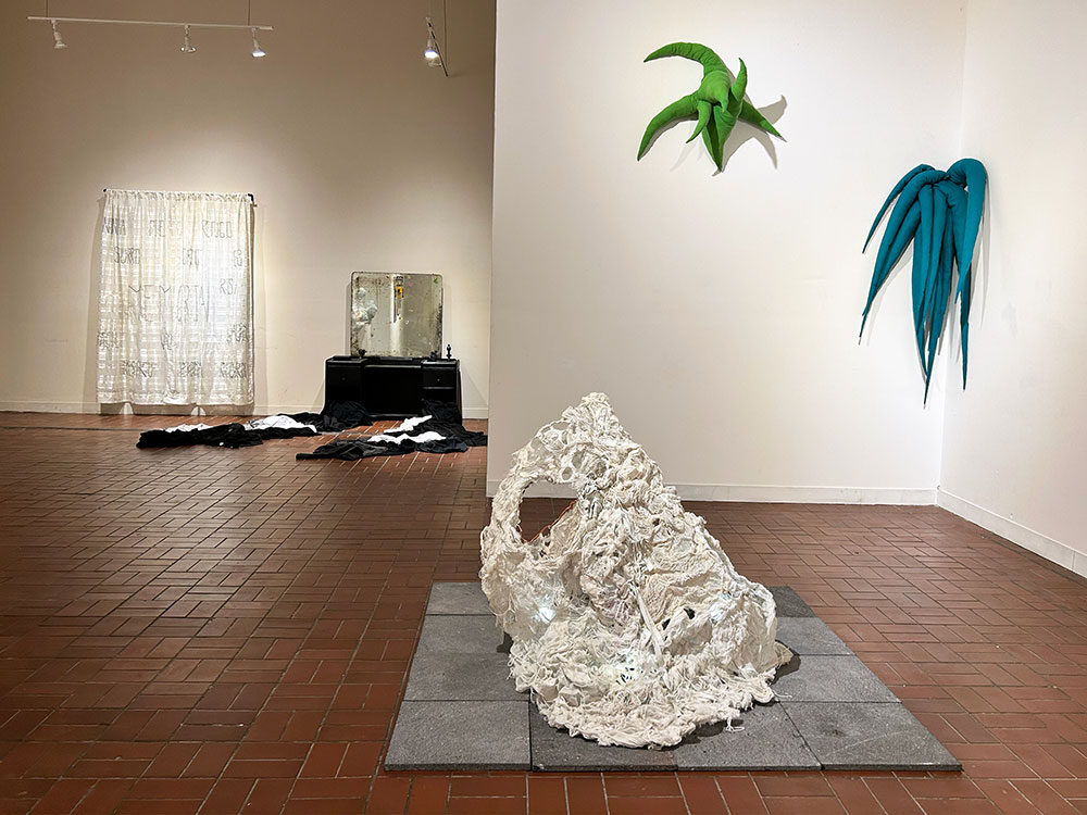 Conformada por una diversidad de estéticas, disciplinas, materiales y técnicas, la presente exposición colectiva configura un panorama amplio de las posibilidades creativas que el textil ofrece como soporte para la creación de proyectos de arte contemporáneo.