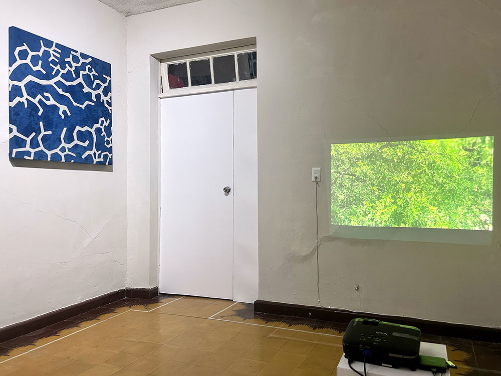 Con estas ocho impresiones cianotipias y un acompañamiento en video, Lourdes Nava nos invita a dimensionar el desgaste ecológico que acontece en un sistema socioeconómico que nos exige desconectarnos de nosotros mismos y correr vertiginosamente al ritmo de los vaivenes del consumismo desmedido. Aquí resuena Anna Atkins una vez mas. Tal vez, si bajamos el ímpetu contemporáneo de la autoexplotación y contemplamos los árboles que nos rodean, podamos aprehender el tiempo que se nos escapa en el azul profundo del cielo cada vez más grisáceo.
