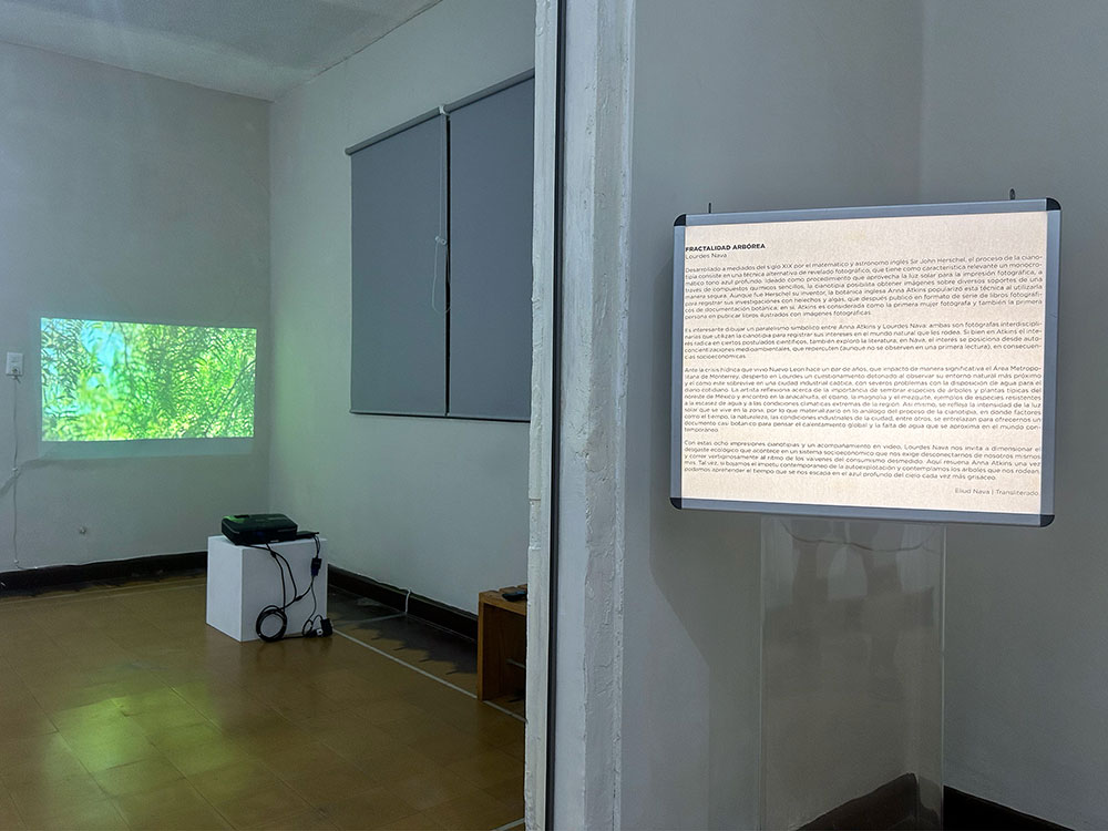 Ante la crisis hídrica que vivió Nuevo León hace un par de años, que impactó de manera significativa el Área Metropolitana de Monterrey, despertó en Lourdes un cuestionamiento detonado al observar su entorno natural más próximo y el cómo este sobrevive en una ciudad industrial caótica, con severos problemas con la disposición de agua para el diario cotidiano. La artista reflexiona acerca de la importancia de sembrar especies de árboles y plantas típicas del noreste de México y encontró en la anacahuita, el ébano, la magnolia y el mezquite, ejemplos de especies resistentes a la escasez de agua y a las condiciones climáticas extremas de la región. Así mismo, se refleja la intensidad de la luz solar que se vive en la zona; por lo que materializarlo en lo análogo del proceso de la cianotipia, en donde factores como el tiempo, la naturaleza, las condiciones industriales de la ciudad, entre otros, se entrelazan para ofrecernos un documento casi botánico para pensar el calentamiento global y la falta de agua que se aproxima en el mundo contemporáneo.