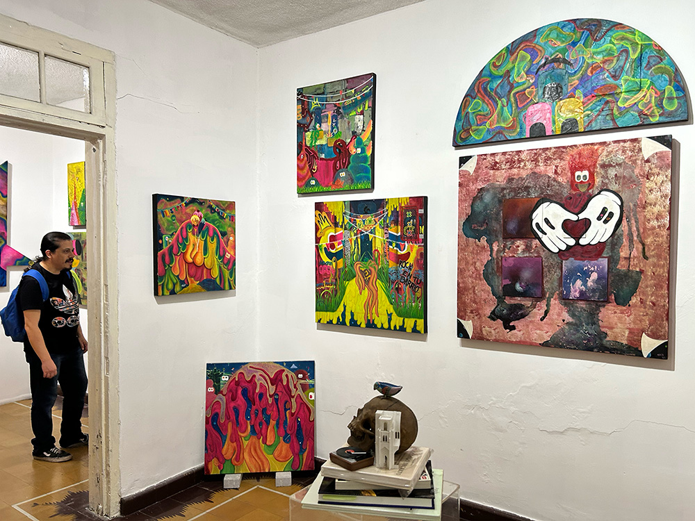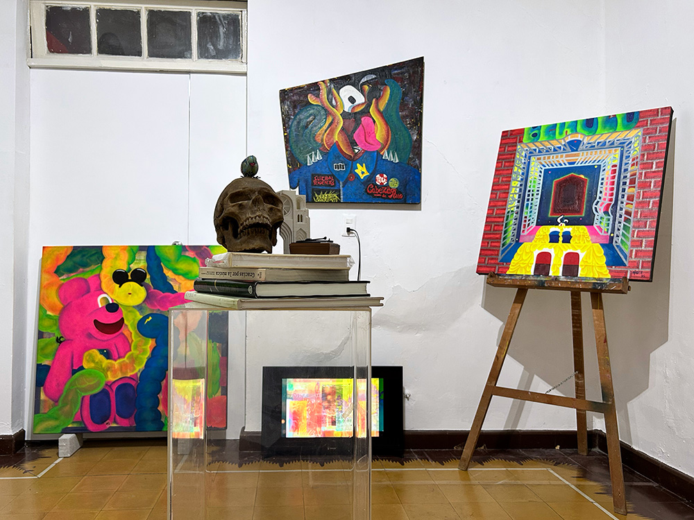 A través de estéticas del pop psicodélico y el surrealismo, Alfredo Hernández ha desarrollado un cuerpo de obra que parte de anécdotas personales a historias potencialmente resonantes en quienes comulgan con sus piezas artísticas. Desde el caos que habita su mente (uno organizado según sus propias palabras), Freddy, como muchos lo conocemos, expulsa su imaginario cual totalidad de su mundo creativo, en el afán de mitigar la carga de la realidad que percibimos, posibilitando así otros horizontes y paisajes en donde desenvolver nuestros egos.
